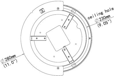 支架尺寸:Φ280mmx172.4mm(Φ11” x6.8”) 天花板开孔尺寸:230mm(Φ9.05”)